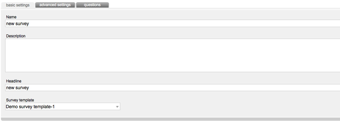 Enter a name, description, headline and a template of your survey here.