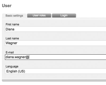 Enter the right of your user in tab 'user roles'. Examples for 'user roles' are 'Administrator' and 'Redakteur'. If you determined further 'user roles' or edited an 'user role' you can chose them here. |