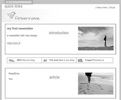 At the highest top, you will find a quick link followed by an introduction and an article. In your newsletters, you do not have to restrict yourself to one element each. Include as many as you need.